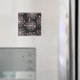 Magnet with a cute seamless pattern with white cobwebs and pink spiders.
