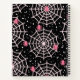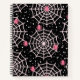 Spiral notebook with a cute seamless pattern with white cobwebs and pink spiders.