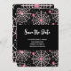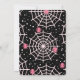 Save the date card wwith a cute seamless pattern with white cobwebs and pink spiders.