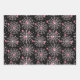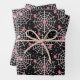 Wrapping paper sheets with a cute seamless pattern with white cobwebs and pink spiders.