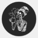 Halloween Coffee Drinking Skeleton Teacher Lazy Di Classic Round Sticker