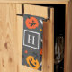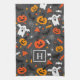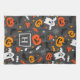 Collection of Halloween symbols pattern in traditional Halloween colours. Yellow, orange, white, and grey. Halloween spiders, ghosts, etc.