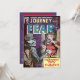 Halloween Comic Invitation based on public domain vintage golden age comic. Bring a taste of classic retro 50s horror with this unique and funny invitation. Designed to resemble an old school style horror comic this retro invitation has it all. On the front is a skeleton postman delivering the invite to a horrified housewife. On the other side is a scared couple in vintage comic strip clothing inviting your guests to a scary spook tacular event. Even the colours of purple blue and reds adds a unique touch to your Halloween event invitation. Easily customisable with your own party venue details.