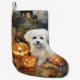 Halloween Coton De Tulear With Pumpkins Scary Small Christmas Stocking