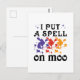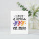 Colourful cow with spots design for Halloween with a witch's spell pun saying.