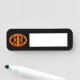 This awesome dry erase name tag features an orange oval with six crows in it. Each crow has yellow eyes with black pupils and outstretched wings. The crows are flying towards each other forming an oval shape. The background is black. You can reuse these name tags making them ideal for parties and group outings.