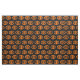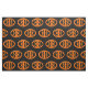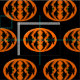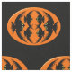 This awesome craft fabric is perfect for all your craft projects. The design features an orange oval with six crows in it. Each crow has yellow eyes with black pupils and outstretched wings. The crows are flying towards each other forming an oval shape. The background is black.