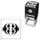 This awesome self inking stamp features an oval with six black crows in it. Each crow has beady eyes with black pupils and outstretched wings. The crows are flying towards each other forming an oval shape.