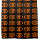 This awesome shower curtain features an orange oval with six crows in it. Each crow has yellow eyes with black pupils and outstretched wings. The crows are flying towards each other forming an oval shape. The background is black.