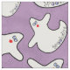 This is a graphic art design of a cute diva ghost with blue eyes and lipstick. The Halloween ghosts are scattered in a random pattern. The seamless background (BG) is purple creating a bold contrast.
