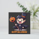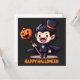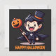 This captivating design features a charming character dressed as a vampire for Halloween, with pointed teeth, a black cape, and an elegant top hat. Proudly holding a smiling jack-o'-lantern on a stick, this vampire exudes the joy and festive spirit of Halloween. The “Happy Halloween” text at the bottom adds a touch of celebration to this colorful and fun design, perfect for sharing the excitement of this spooky holiday. With its bright colors and playful style, this design is ideal for kids and the young at heart, capturing the innocence and magic of Halloween.