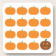 A cute patch of festive orange pumpkins are joined by a happy little holiday jack o' lantern at the end of the line. Happy Halloween!