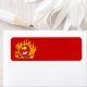 This Halloween label features a cartoon devil with a pitchfork surrounded by flames on a red background. Click on the Customise It button to change the background colour or add your own text. Can be used as an address label, gift tag, bookplate label, party favour and more.