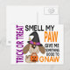 Halloween Dog Smell My Paw t-Shirts, gifts, and apparel with adorable Halloween dog wearing a witch's hat and carrying a halloween pumpkin.