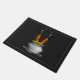 Halloween doormat is shown with a witch in a bubbling pot print on a slate background colour.
