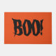 Halloween doormat shown with a spooky Boo! print on a orange background.
