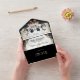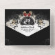 A simple yet elegant Halloween wedding invitation featuring elegant wedding skeletons on the outside flap, and black roses & golden floral leafs with just a hint of red to make the design pop. The invite is a nice all-in-one. Feel free to click "customise further" and make any necessary adjustments (font sizes, etc). This invitation has the RSVP menu options, but there is also one without, please see the collection for more.