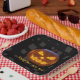 Evil Pumpkin Square Plate"d Enjoy Your Last Meal. Orange Black Grey Squares. Spooky scary smiling pumpkin Halloween table placemat.