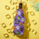 Super cute design features little cartoon Bats, zombies, ghosts, pumpkins, cats on a bright purple background.