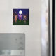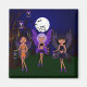 The unique and original Halloween faeries are Phoenix, Raven and Eve Hallow! These magical sisters are standing in a fantasy forest under a full moon with bats flying in the sky. The crooked tree has many purple lanterns hanging from the branches to light the spooky night of Halloween! These magical faeries are ready to share Halloween or any day with you! Get them on t-shirts, magnets, and more at Hinterland Harmony.