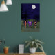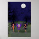 Raven, Phoenix and Eve are walking under the full moon on Halloween night by the graveyard as bats fly overhead.