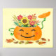 This beguiling bright orange jack-o'-lantern tips its top with a gleeful Autumn greeting, filled with an overflowing splendour of colourful fall flowers.