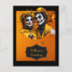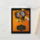 Halloween Floral hat and make up caricature couple Post card.
