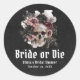 Halloween Floral Skull Bride or Die Bridal Shower Classic Round Sticker