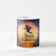 A witch flying across the sky with a happy Halloween message. This design looks really effective on these Mug