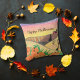 Halloween Folk Art throw pillow, with a pumpkins harvest design and customisable black script typography lettering. A festive home decor item to accent your autumn decorations.