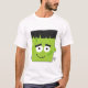Halloween Frankenstein design T-shirts, bodysuits, mugs, magnets, tote bags, cards, stickers, and other cute Halloween gear with a green happy Frankenstein design!