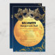 Invite your guests to a glamourous Halloween masquerade ball with this stunning invitation. Featuring gold masks, a full moon, a bokeh background, and gold glitter swirls, it sets the perfect tone for an elegant and mysterious event.