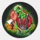 Halloween Funny Green Zombie Axe on Classic Round Sticker