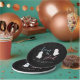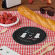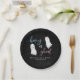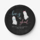 Halloween theme gender reveal party paper plate featuring illustration of boy and girl ghosts. The text says "boo-y or ghoul."