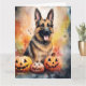 Get your furry friend ready for a howling good time with this adorable dog-inspired Halloween design! Featuring a spooky dog with pumpkins, this design is perfect for pet parents who want to include their four-legged family