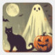 Halloween Ghost, Black Cat and Jack-o'-lantern Square Sticker