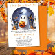 Cute ghost and pumpkin baby shower invitation for the mum-to-be, Halloween gender neutral baby shower invitation. Customise names, dates, and information.