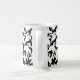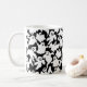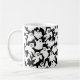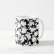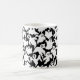 This coffee mug is shown in black and white with a Halloween ghost print design.