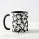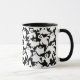 This coffee mug is shown in black and white with a Halloween ghost print design.