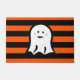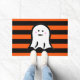 Halloween Ghost on Black and Orange Stripes Doormat