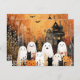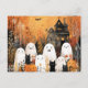 Halloween design with happy ghosts, black cats, bats, pumpkins, and haunted house. Happy Halloween!