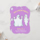 Beautiful Halloween Trumpy and Munchy ghosts Invitation. There is a ghost pattern on violet background on the back side. All texts and numbers are ready to be personalised.