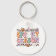 Cute, fun, colourful, feminine retro style Halloween Ghosts Spooky Season keychain with ghosts wearing sunglasses and witch hats, pumpkins, flowers, and skulls, and text of melon, lavender, pink, and teal that reads Spooky Season!
