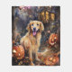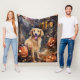 Halloween Golden Retriever With Pumpkins Scary Fleece Blanket