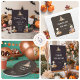Halloween themed kids birthday paper plate featuring cute goose in halloween costumes framing a stylish script font and a sans serif font in which all your personalised information is written. Check out our store for more items from this collection.