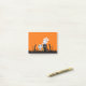 A spooky fun set of sticky notes. Creepy cute halloween design. Set in a dark and scary graveyard. A gravestone says RIP, with a candle and some glowing skulls on the ground. An old creaky fence leans off to the side. An adorable smiling skeleton is waving and some cool looking ghosts are swirling around in the air. Set on an orange background.