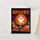 Halloween graveyard with cute Ghost and giant moon Postcard
