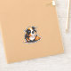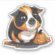 A cute orange, black, and white guinea pig with big eyes sits beside a jack-o-lantern. This is a great Halloween sticker for anyone who likes guinea pigs.