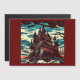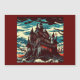 This stunning image, inspired by the traditional ukiyo-e style, depicts a haunted castle on a cliff with a stormy sky in the background. The castle is black and has multiple towers and spires, while the sky is dark blue with swirling clouds. The castle is on a cliff with gnarled trees and red lava flowing below, adding to the eerie atmosphere. This print is perfect for adding a touch of mystery and intrigue to your Halloween decorations, or for displaying year-round as a unique and haunting piece of art.