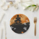 Halloween Haunted House Orange Gold Glitter Paper Plate